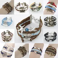 AliExpress.com Product - NEW 2014 Girl Jewelry Vintage Braided Anchors Rudder Metal Leather Bracelet Multilayer Rope Bracelets Wholesale Bangle